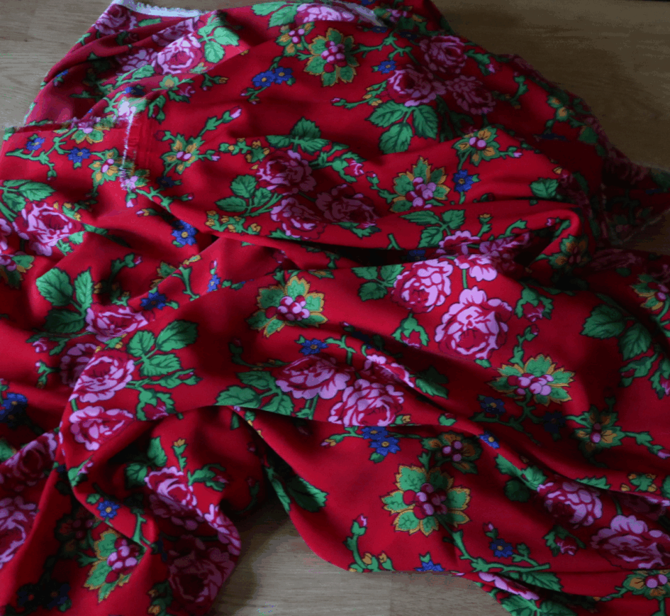 I forbindelse med vores arrangementer, hvor vi præsenterer bogen “Roepolakkerne satte spor” forsøgte jeg for flere uger siden at bestille tre blomstrede tørklæde fra en polsk internetbutik. I dag har jeg modtaget 3 meter flot, polsk stof, og så må jeg selv i gang med at klippe og lave sømme.